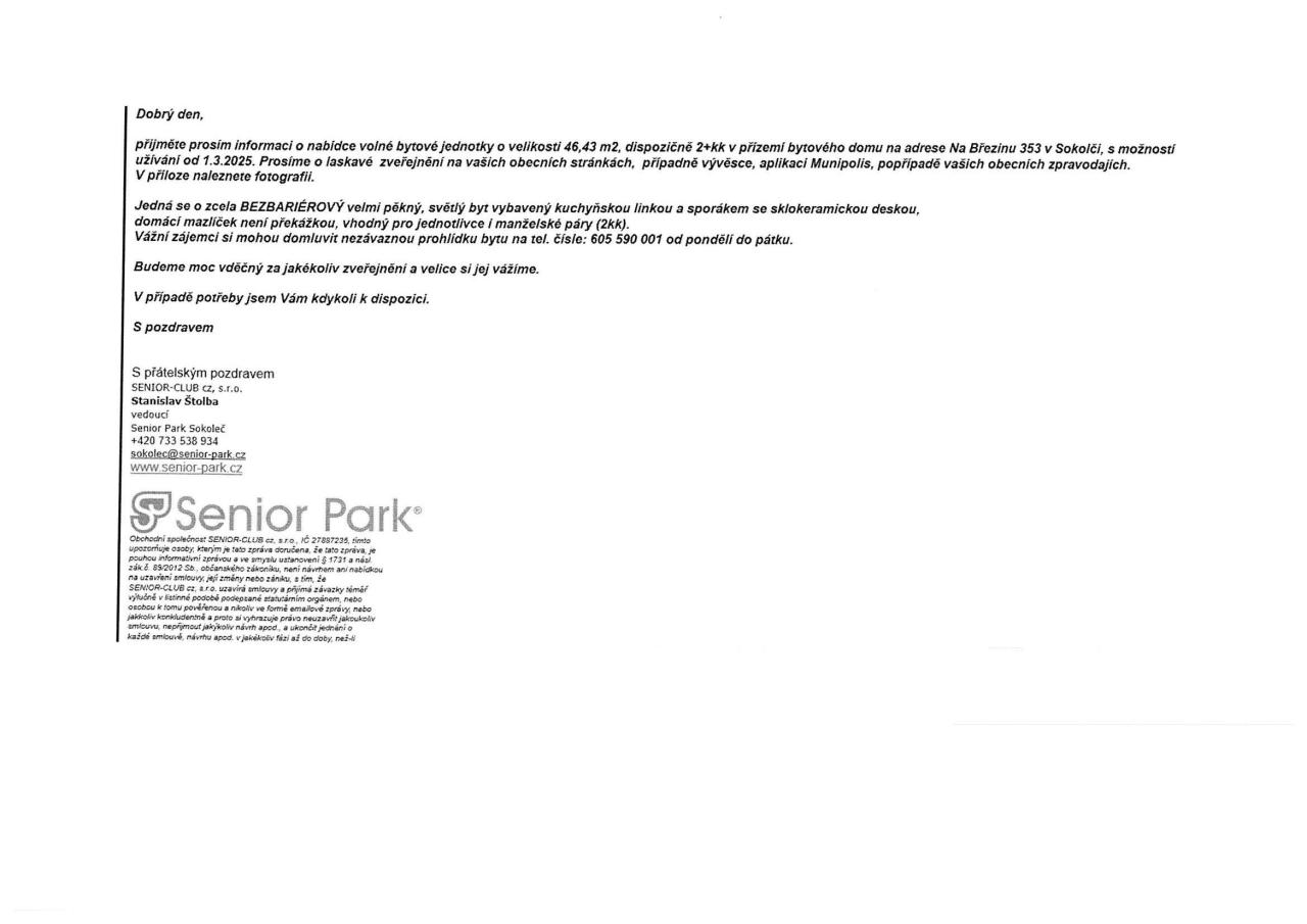 nabídka bezbariérového bydlení pro seniory - Sokoleč