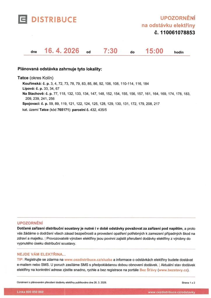 Oznámení o přerušení el. energie Typ: PDF dokument, Velikost: 99.98 kB