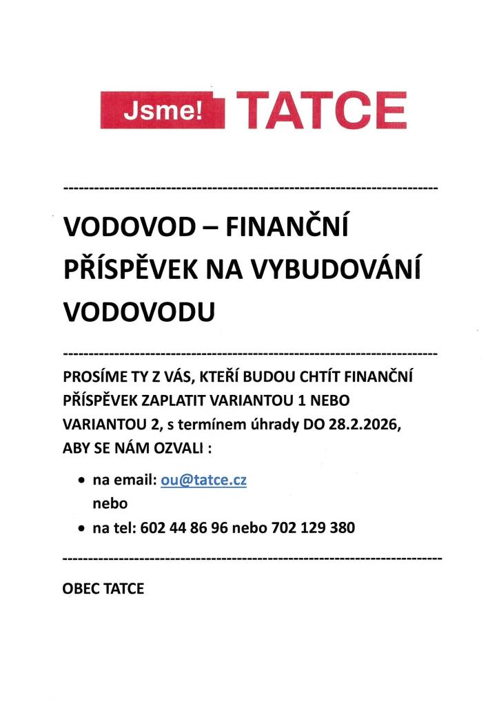 Informace k projektu vodovodu: