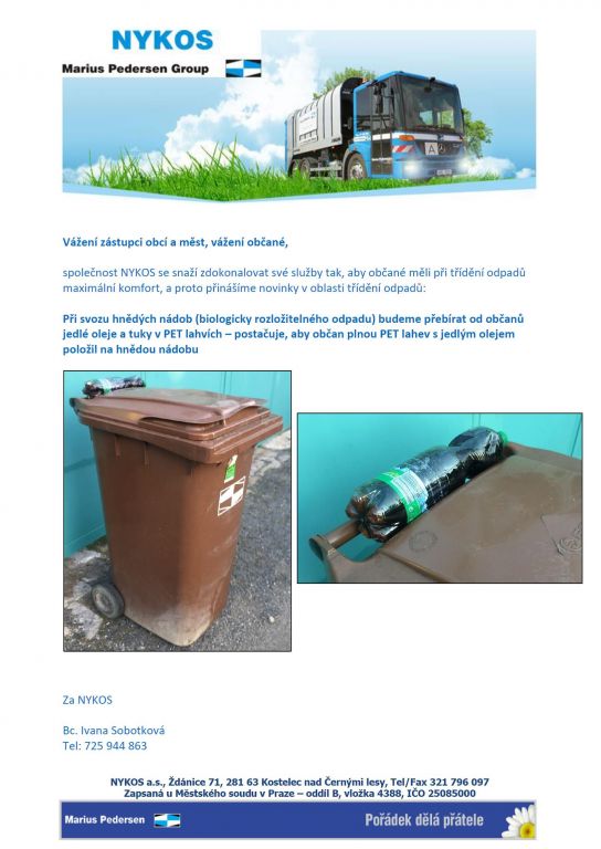 Všichni jsme si postupně zvykli na třídění odpadů a po zavedení jejich svozu přímo od domů přicházíme s další novinkou, kterou nám společnost Nykos třídění usnadní a zpříjemní.