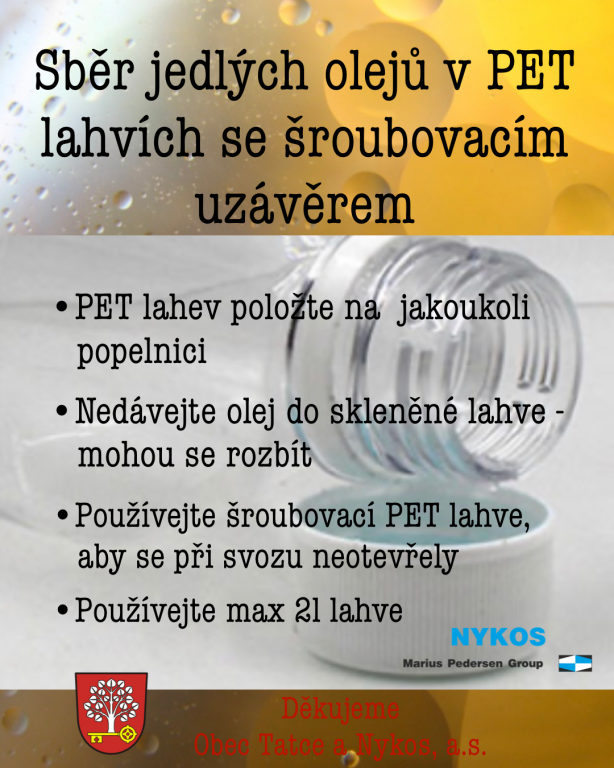 Svoz jedlých olejů v PET lahvích se šroubovacím uzávěrem