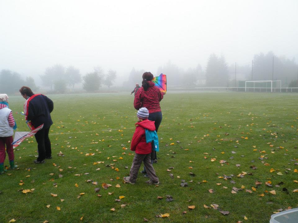 Den tateckých stromů - 2. ročník, sobota 20.10.2012 - probudili jsme se do mlhavého rána, nehnul se ani lístek takže ideální počasí na drakiádu :)