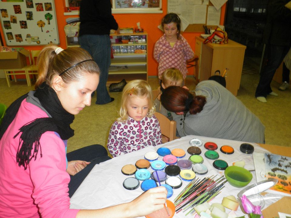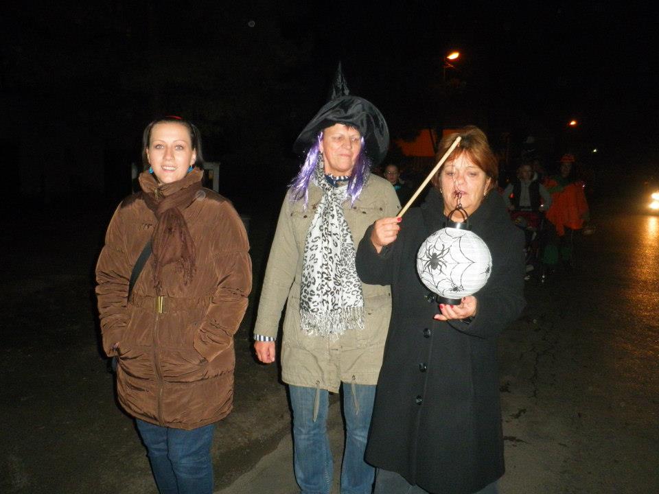 Děti se ale nenechaly odradit a světe div se....draci létali, což nikdo z nás moc nechápal. Vítězům soutěží O Nejkrásnějšího draka a O nejvyšší vzlet jsme předali knížky a časopisy a nesměla chybět ani nějaká sladkost. Po obědě přišla na řadu práce....po loňské obrovské účasti při sázení stromů jsem měla představu, že nás zase bude dost, ale zřejmě vinou počasí nás tam moc nebylo. Takže v podstatě můžu poděkovat všem zúčastněným....děkuju Marie Březinová, Lucie Böhmová, Káťo Čábelková, Milane Čábelko, Vojto Čápe, Petře Schneidere ml. i st., Davide Pokorný, Petro Hrušková, Emo Hrušková, Jáchyme Hruško, Daníku Chalupko a Radku Hoznauere. Pěkně jsme si mákli, posekali jsme vysokou trávu a křoví u třešní vysazených v loňském roce a měli jsme v plánu natřít dřevěné prvky na dětském hřišti. Z toho nakonec sešlo s ohledem na počasí, ale i vzhledem k počtu lidí....prostě bychom to stejně nestihli. Takže tohle nám zbylo na jaro!!! Zakončení celého dne bylo lampionovým průvodem, předtím ve školce proběhlo malování na obličej. Průvod vyšel od školy asi v půl 7, prošli jsme vesnici a ukončili jsme ho na školní zahradě, kde byla pro děti připravená strašidelná stezka.....myslím, že za všechny, kdo přišli můžu říct, že tohle byla pecka!!! Chci poděkovat všem, díky kterým mohla tahle akce proběhnout....členkám občanského sdružení Pro Tatce za organizaci celého dne, škole a školce za nemalou pomoc a především Janě Zukerové a jejím kamarádkám z mateřského centra v Radimi, všem dobrovolníkům, kteří neváhali pomoci, děkuji také mým kamarádkách za usměrňování aut na hlavních silnicích, děkuju firmě Nykos za finanční podporu této akce.....prostě děkuju všem, kdo jste tam byli a těším se na další ročníky....Blanka
