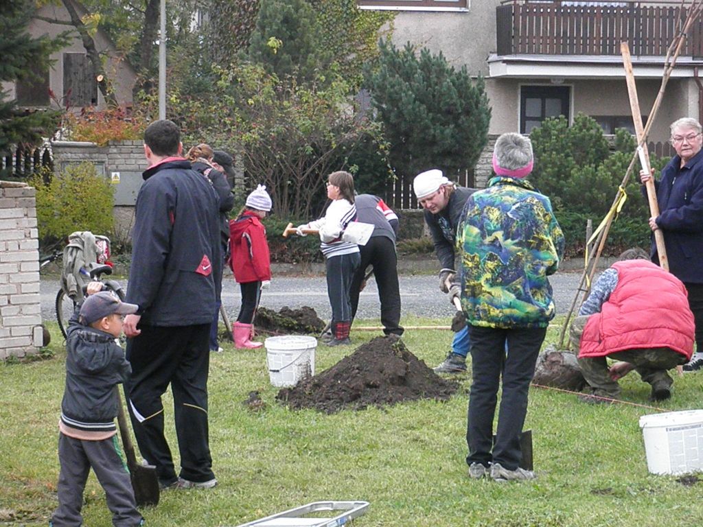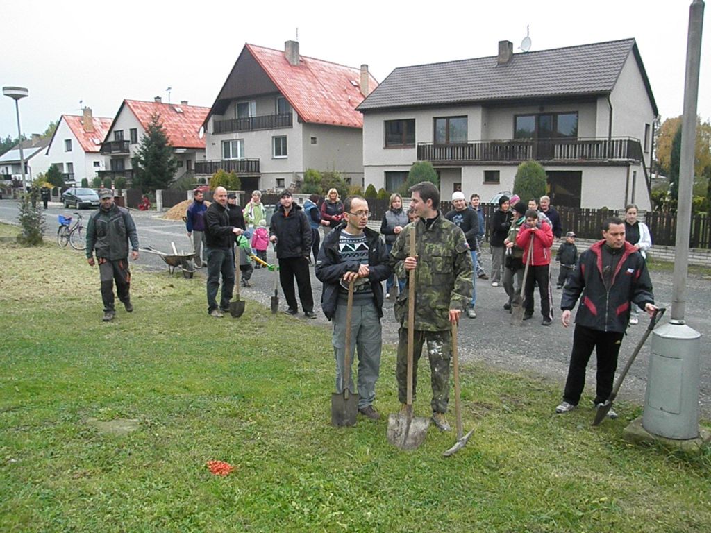 13:00 Sázení stromů - v rámci projektu Podlipansko sází stromy byly vysázeny javory v ulici Oblouková a třešně za hřištěm. Pro všechny dobrovolníky bylo připraveno občerstvení, které bylo jedinou odměnou za jejich práci. Sešlo se nás asi 45 a tak šla práce fantasticky od ruky. Po druhé hodině odpolední bylo hotovo. Skvělá práce, díky moc.